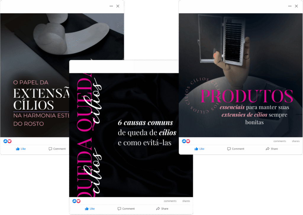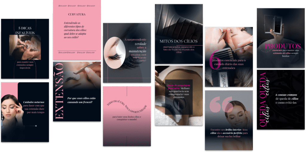 Engaje e atraia com conteúdos que solidificam sua conexão com o público, posicionando você como referência no universo do lash design.
